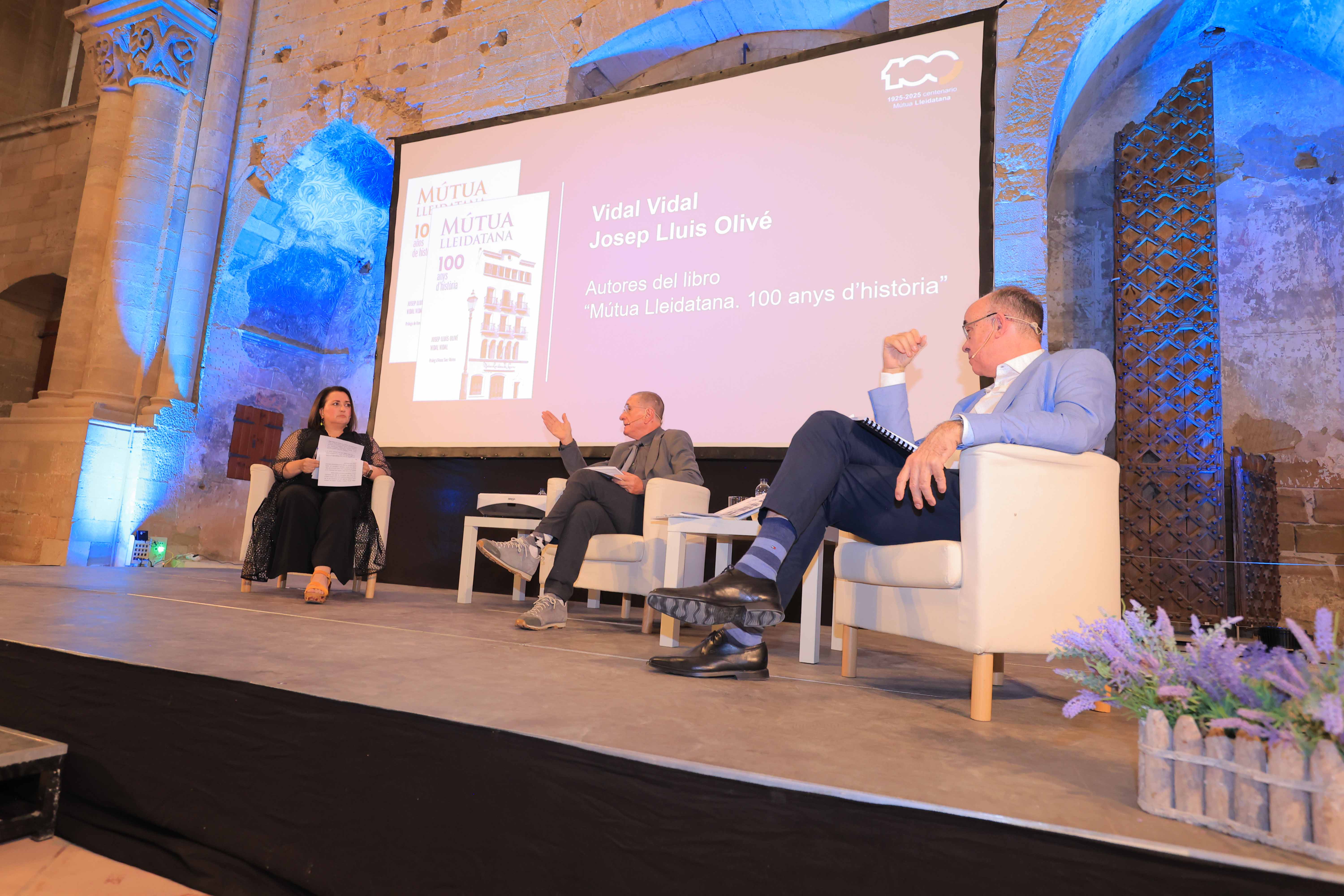 Un dels moments destacats de la jornada ha estat la presentació del llibre Mútua Lleidatana. 100 anys d’història, obra de l’escriptor local Vidal Vidal i de Josep Lluís Olivé, exempleat de la mútua. Moderats per Anna Sáez, directora del diari El Segre, els autors han compartit algunes anècdotes i reflexions recollides en el llibre.
