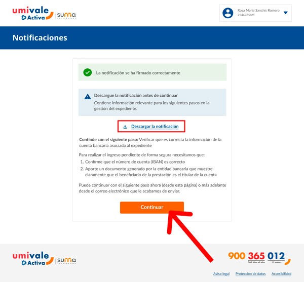 Paso 5: Una vez firmada la notificación correctamente es muy importante que descargues esta notificación para tener toda la información relevante sobre los siguientes pasos en la gestión de tu expediente.