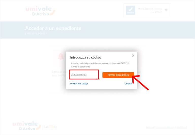 Introduce el código y haga clic en el botón de “Firmar documento”.