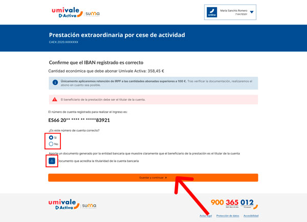 Debajo de esta información, se te preguntará: "¿Es este número de cuenta correcto?". Si el número de cuenta es correcto y tú eres el titular.