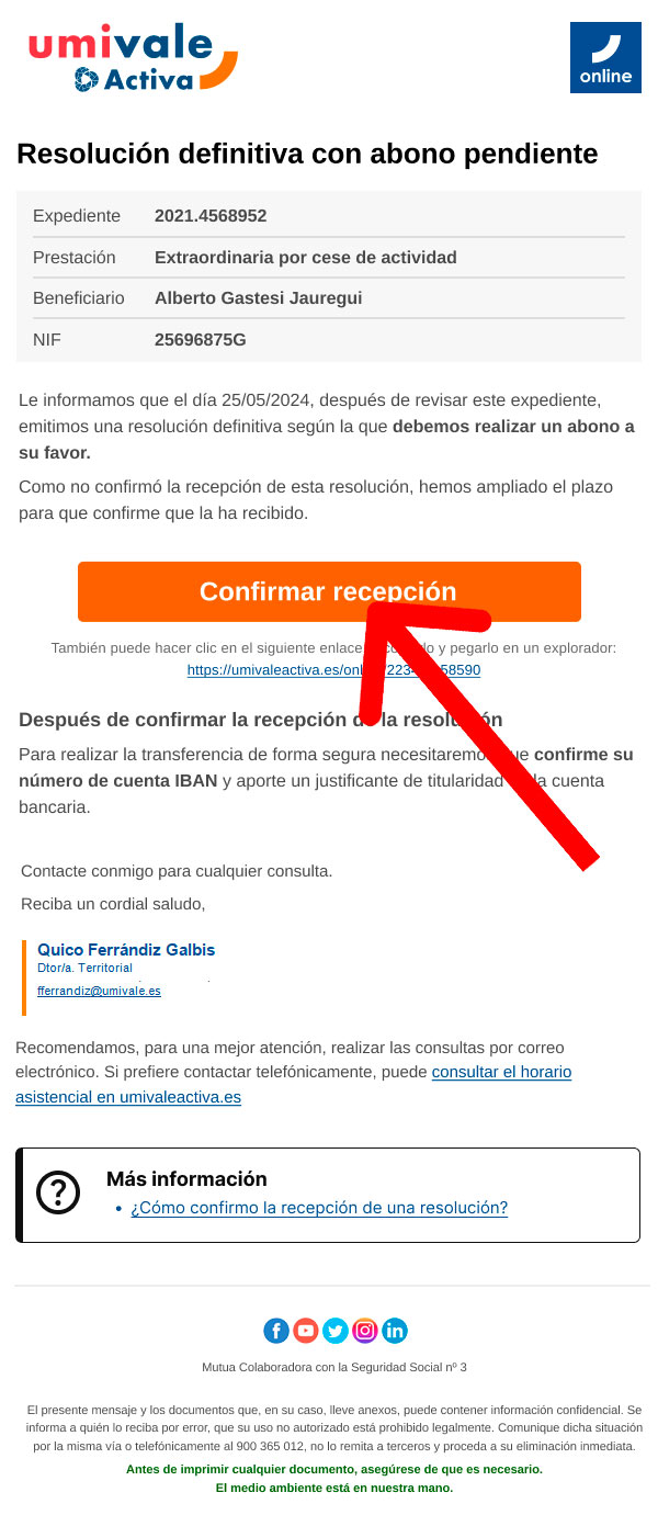 Paso 1: La persona usuaria recibe una notificación a su cuenta de email.